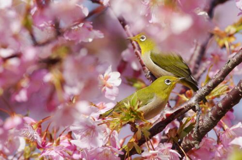 聖崎公園の河津桜が見頃を迎えました♪桜色とメジロの黄緑色が綺麗だわ~(*´ェ`*)PENTAX K-5smc PENTAX-DA★300mmF4 ED