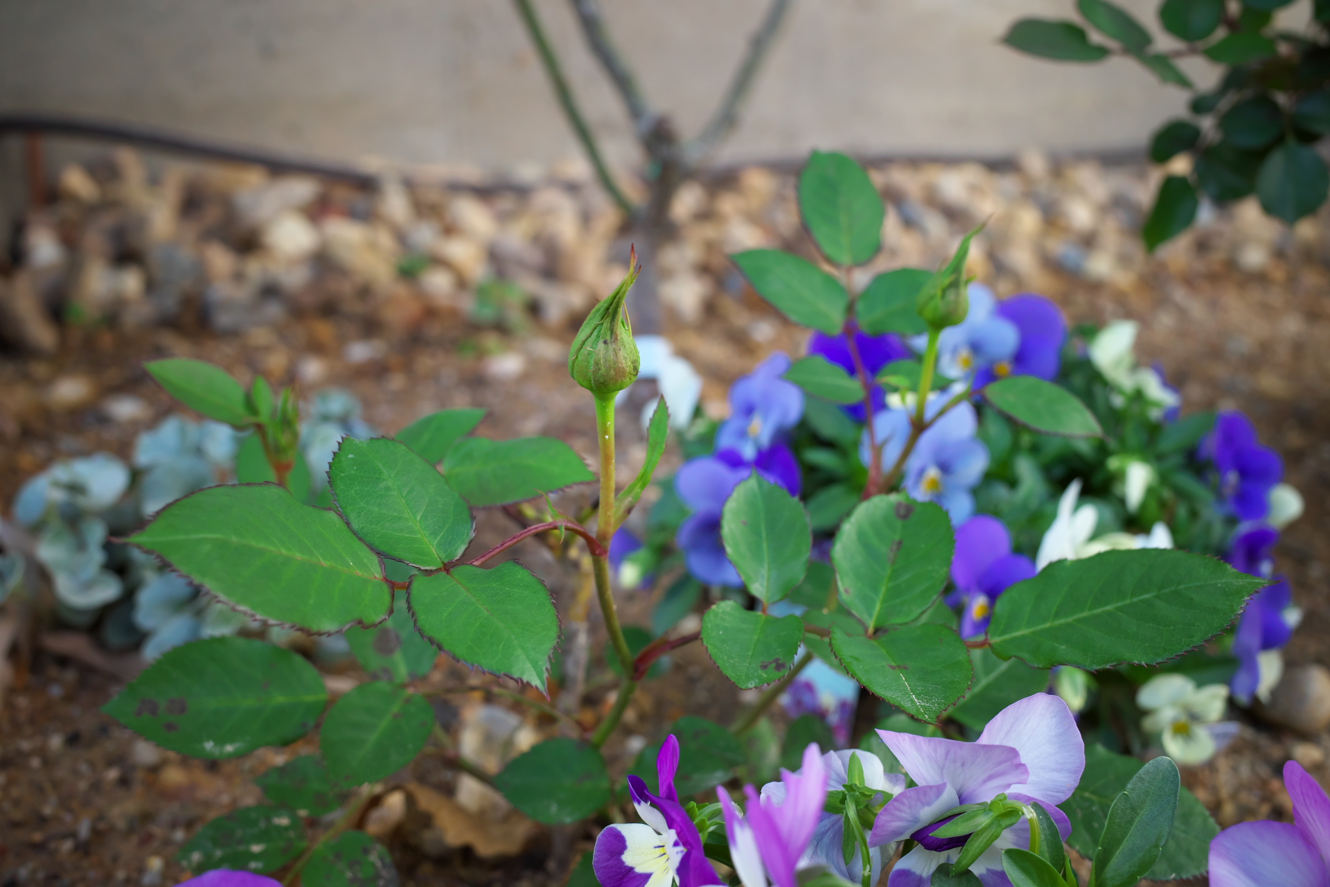 引っ越し後、最初に植えた苗で、冬の間はほとんど変化がなかったので、花が咲くのか心配だったけど、花芽がたくさん見えてきました!ビオラとの間隔がちょっと狭かったなぁ。