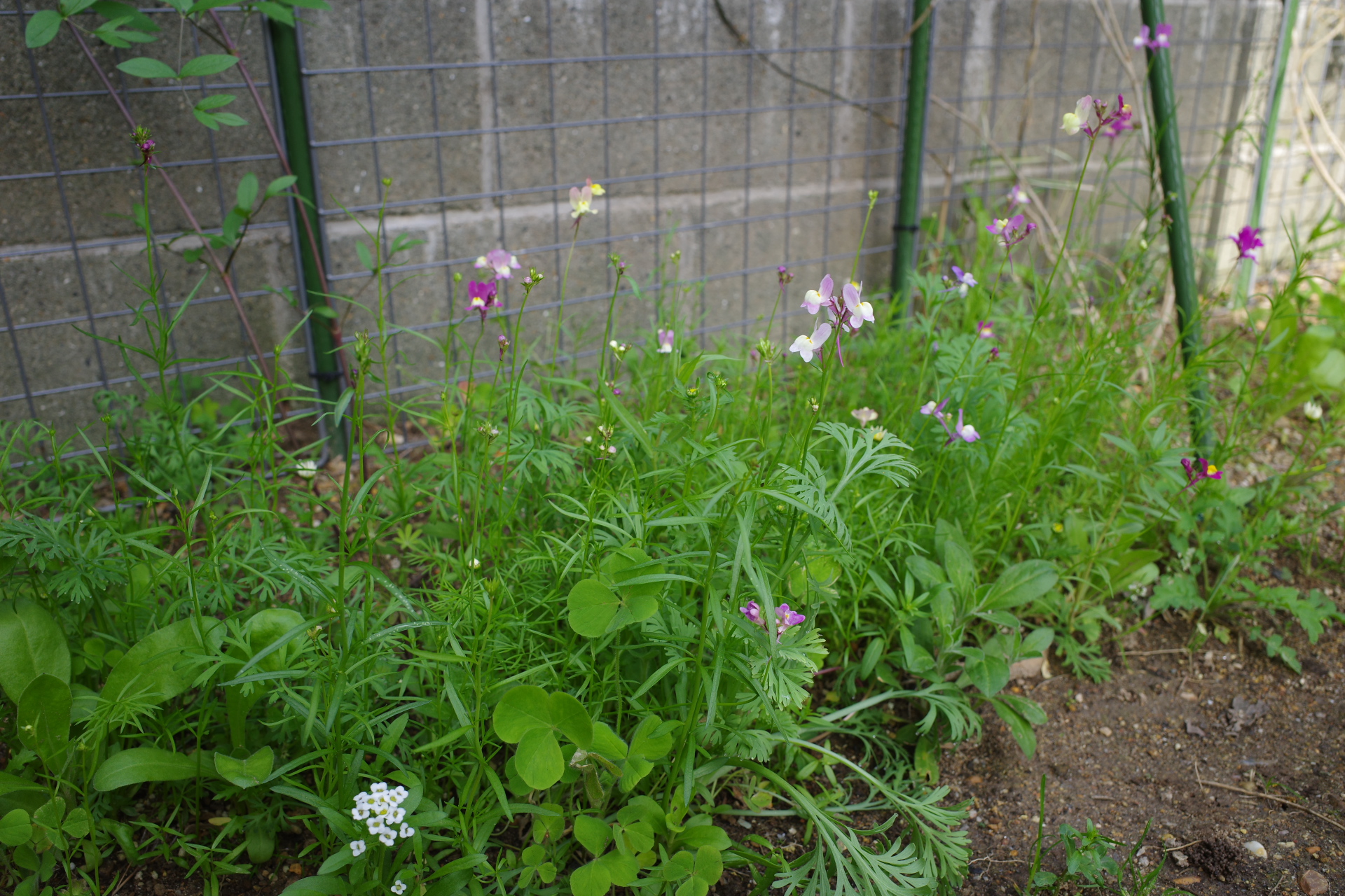 ハゴロモジャスミンの足元が空いていたので、昨年の秋に種を蒔いたのですが、この場所は夏も日陰になりそう…花付きが悪く弱々しいので失敗したかも。