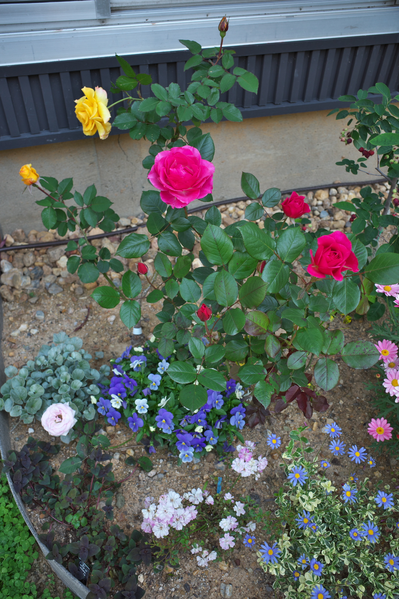 2023-05-11 バラとクレマチス RICOH GRⅢ 花 昆虫 品種不明 歌舞伎 今のところ濃いピンクが一番元気で花付きがいいです。一季咲きかしら?歌舞伎は四季咲きなので今後に期待。花が開くとうつむくタイプのようです。 薄いピンクは地面すれすれに花がついているので、マルチングをしなきゃなぁと思いつつ、作業が進んでいません。 テッセン クレマチス ’ロウグチ(篭口)’ 強健で花期が長い品種のようです。 ナミアゲハの幼虫 今朝は黒かったのに、いつの間にやら終齢幼虫になりました。