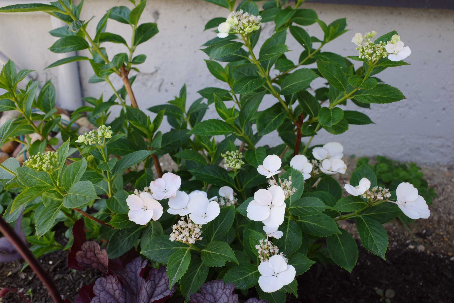 この株は、他のアジサイと違って、線が細く葉が小さめ。画像検索すると「ラグランジア ’ブライダルシャワー’」が出てくるけど、どうかな~?